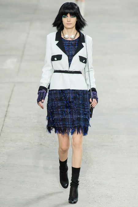 Показаните 89 визии преливат от къси и дълги рокли от туид с меланжиран цвят, към монохромни комбинации на издължени сака и къси панталонки, до color block съчетания на широки панталони и три блузи – едната носена в допълнение на панталона, втората вързана през кръста, третата – метната на раменете. Визиите са допълнени от мини чанти в ярки цветове, от раници, сякаш ръчно рисувани, от обемни портфолио папки, както и от поредната интерпретация на знаковото за Chanel перлено бижу – този път съставено от две огромни перли, декориращи колие тип choker.